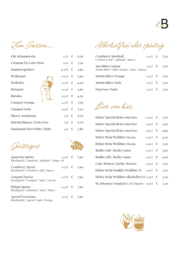 Einen kleinen Café noir (Espresso) oder eine große Tasse Café au lait (Milchkaffee) – die Franzosen schwören darauf und lassen so am liebsten ihren Tag in einem Bistro beginnen. Ein Café darf natürlich auch nicht nach dem Mittagessen fehlen und Abends, was für eine Frage, ein Glas Wein, für den perfekten Tagesausklang. Das und noch viel mehr erwartet sie natürlich auch im Le Bastian. Santé!